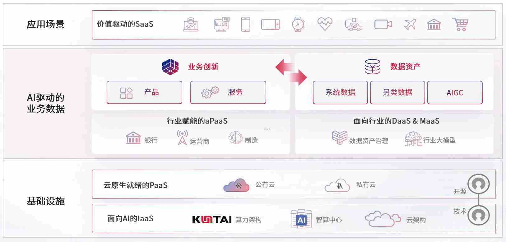 数字时代,,围绕企业数字化转型的关键要素,,,,尊龙旗舰厅数码开创性的提出数云融合战略和技术体系框架,,,着力在云原生、、、数字原生、、AI原生和信创产业上架构产品和服务能力,,,,为处在不同数字化转型阶段的快消零售、、、汽车、、、、金融、、、医疗、、政企、、、、教育、、、运营商等行业客户提供泛在的敏捷IT能力和融合的数据驱动能力,,,,构建跨界融合创新的数字业务场景和新业务模式,,助力企业级客户建立面向未来的核心能力和竞争优势,,,全面推动社会的数字化、、、智能化转型升级。。。